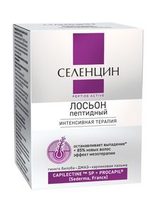 Пептидный лосьон Селенцин Peptide Active — инновационный лосьон на основе пептидов французского производства для восстановления густоты волос при хроническом, длительном выпадении и поредении волос. В два раза эффективнее стандартной терапии выпадения волос! В более чем два раза доступнее импортных аналогов!Несомненным преимуществом пептидного лосьона Селенцин является также наличие в составе профессионального комплекса ДМАЭ для улучшения кислородного обмена и замедления старения клеток волосяного фолликула, доступного ранее только при сеансах мезотерапии в профессиональных салонах. Таким образом, пептидный лосьон Селенцин делает профессиональные методики доступными для домашнего использования, являясь безопасной альтернативой мезотерапии без инъекций и синдрома отмены!Благодаря современной форме выпуска в ампулах, при использовании пептидного лосьона Селенцин обеспечивается высокая точность дозировок.Активные компонентыПептидный комплекс: Capilectine™ SP / Procapil® Активизирует клеточный метаболизм в волосяных фолликулах, что способствует ускорению роста волос Стимулирует переход волосяных фолликулов в активную стадию роста Пролонгирует жизненный цикл волоса, способствуя повышению густоты волос Замедляет процесс старения волосяных фолликуловЭкстракт листьев Гинкго-билоба обеспечивает Улучшение микроциркуляции на уровне волосяного фолликула Останавливает процессы старения на клеточном уровне Восстанавливает углеводный обмен на уровне волосяного фолликулаПрофессиональный комплекс ДМАЭ обладает Антиоксидантным, противовоспалительным свойствами Профилактирует старение клеток, Улучшает кислородный обмен, Повышает энергетический статус волосяного фолликула.Экстракт Карликовой пальмы Профилактирует и останавливает андроген-зависимое выпадение волос. Восстанавливает нормальную работу андроген-зависимых сигнальных путей, Профилактирует миниатюризацию волосяных фолликулов и восстанавливает толщину стержня волос