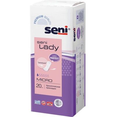 Урологические прокладки Seni Lady Micro для защиты при капельной степени недержания мочи. Гипоаллергенны, подходят для чувствительной кожи. Незаметны в носке, широкая клеящая полоска надежно фиксирует прокладку к белью.