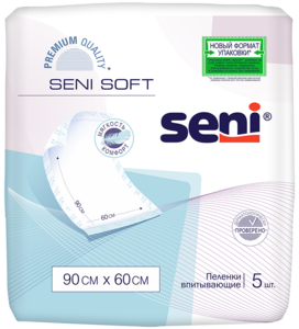 Пеленки предназначены для дополнительной защиты постельного белья и кресел, в том числе при недержании мочи (инконтиненции), во время гигиенических процедур и при смене повязок. Имеют наибольшую впитываемость среди пеленок Seni.верхнее покрытие из мягкого, приятного на ощупь материаласпециальный слой из нетканого материала помогает равномерно распределять жидкостьвпитывающий слой из 100% целлюлозы быстро впитывает влагунижний защитный слой выполнен из водонепроницаемой пленки, которая надежно защищает от протеканияпротивоскользящая поверхность предотвращает смещение пеленкиподвернутые края обеспечивают дополнительную защиту от протекания