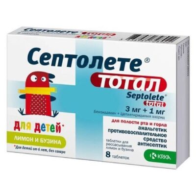 Главная » Аптека Септолете Тотал для детей 6+ лимон и бузина таблетки для рассасывания 3мг+1мг 8шт Просмотров 7 KRKA