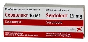 Показания к применениюШизофрения (за исключением острых психотических расстройств), при непереносимости как минимум одного антипсихотического средства.Применение при беременности и кормлении грудьюПротивопоказан при беременности, в период лактации.ПротивопоказанияГипокалиемия, гипомагниемия; тяжелые сердечно-сосудистые заболевания (в т.ч. в анамнезе), включая застойную сердечную недостаточность, гипертрофию миокарда, аритмию или брадикардию (менее 50 уд./мин), врожденный синдром удлиненного интервала QT или наличие этого синдрома у родственников больного, приобретенный удлиненный интервал QT (более 450 мсек у мужчин и 470 мсек у женщин); одновременный прием препаратов, удлиняющих интервал QT (в т.ч. антиаритмиков классов I A и III, некоторых антипсихотических средств, антибиотиков группы макролидов, фторхинолонов, антигистаминных средств, цизаприда, препаратов лития); одновременный прием препаратов, ингибирующих изоферменты CYP3A (в т.ч. противогрибковых средств производных азола, антибиотиков группы макролидов, ингибиторов ВИЧ-протеазы, циметидина); тяжелая печеночная недостаточность; угнетение функции ЦНС различной этиологии; беременность, период лактации; детский и подростковый возраст до 18 лет; повышенная чувствительность к сертиндолу.Побочное действиеСо стороны дыхательной системы: часто — ринит, затруднение носового дыхания; редко — одышка.;Со стороны ЦНС и периферической нервной системы: редко — головокружение, парестезии, синкопальные состояния, судорожные расстройства, двигательные нарушения (включая позднюю дискинезию), злокачественный нейролептический синдром.;Со стороны пищеварительной системы: редко — сухость во рту.;Со стороны сердечно-сосудистой системы: редко — постуральная гипотензия, увеличение интервала QT, пароксизмы желудочковой аритмии (типа «пируэт»).;Со стороны мочевыделительной системы: редко — лейкоцитурия, гематурия.;Со стороны обмена веществ: редко — увеличение массы тела, гипергликемия.;Прочие: периферические отеки, уменьшение объема эякулята.СоставСертиндол 16 мг;Вспомогательные вещества: крахмал кукурузный, лактозы моногидрат, целлюлоза микрокристаллическая, гипролоза, магния стеарат, натрия кроскармеллоза.;Состав оболочки: гипромеллоза, макрогол 400, титана диоксид (Е171), железа оксид красный (Е172).