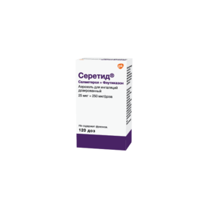 Серетид Аэрозоль для ингаляций дозированный 25 мкг+ 250 мкг/доза 120 доз
