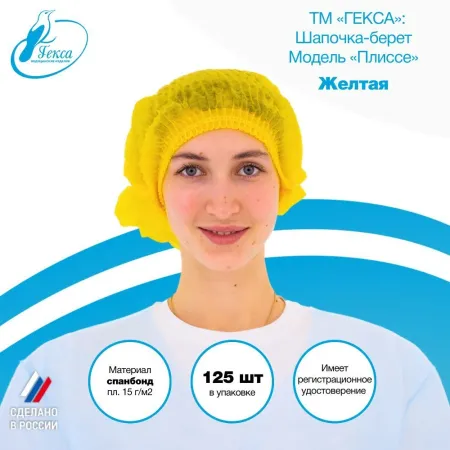Главная » Аптека Шапочка берет желтая пл.15 (мод.Плиссе) 125 шт Просмотров 12 Гекса-Нетканные материалы ООО