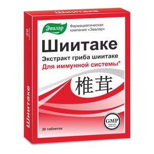 Главная » Аптека Шиитаке Таблетки 20 шт Просмотров 7 Гриб шиитаке является продуктом, который может стать отличным дополнением к питанию и при этом существенно укрепить защитные силы организма. Эвалар