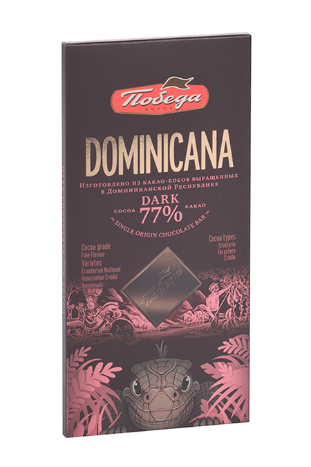 Шоколад Доминикана ДАРК (DARK) 77% какао горький, 90 г, Победа