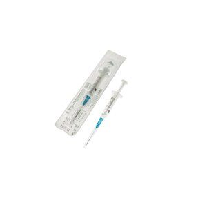Бренд МЕДПРОМ продакшен — одноразовые медицинские шприцы.Шприц инъекционный двухдетальный 2 мл (2А) ЛуерСтерильныйОдноразовыйДвухкомпонентныйИгла 23G (0,6х30мм) — съёмная, надетая на шприцИнъекционная игла имеет трёхгранную заточку острия, обеспечивающую легкий и комфортный прокол тканиСоединение шприца с иглой — тип Luer slip (Луер слип)Положение луер-крепления (конуса цилиндра) шприца — концентрическое, т.е. наконечник-конус находится по центру цилиндра шприцаОбъем шприца 2 млШкала имеет градуировку до 2 мл (цена деления шкалы 0,1 мл)Общая вместимость шприца несколько превышает номинальный объем (не менее, чем на 10 %)Два стопорных кольца исключают случайное извлечение поршня из цилиндра и вытекание лекарстваПрозрачный цилиндр облегчает контроль объема и прозрачности медикаментаУпаковка — блистерИндивидуальная упаковка обеспечивает сохранность стерильности.