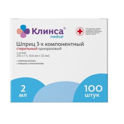 Главная » Аптека Шприц инъекционный 3-х компонентный стерильный с иглой 23G Клинса 0,6х32мм 2мл 100шт Просмотров 10 Хуайань Сити Хэнчунь Медикэл Продакт Ко., Лтд.