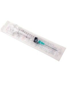 Шприц стерильный инъекционный однократного применения состоит из полого прозрачного цилиндра с нанесенной на него градуированной шкалой, наконечником (конусом) с отверстием и упорами для пальцев, штока-поршня с упором штока на нем и уплотнительным кольцом — манжетой (уплотнителем), надетой иглой инъекционной с защитным колпачком на ней.Соединение поршня с цилиндром и конусное соединение наконечника цилиндра с головкой инъекционной иглы водонепроницаемы, воздухонепроницаемы и герметичны под давлением.Шприц стерилизован оксидом этилена.Характеристики: СтерильныйОдноразовыйТрехкомпонентныйОбъем шприца 10 млШкала имеет градуировку до 10 млХарактеристика иглы:изготавливается из специальной особо прочной медицинской нержавеющей стали, трехгранная лазерная заточка иглы увеличивает проникающую способность иглы без дополнительных усилий (для быстрого безболезненного проникновения), смазка нанесена на наружную поверхность трубки иглы.Игла 21G x 1 ½» (0.8 x 40 мм), надета на шприцПреимущества:Стопорное кольцо исключает случайное извлечение поршня из цилиндра и вытекание лекарства для внутримышечных инъекцийОбщая вместимость шприца несколько превышает номинальный объем (не менее, чем на 10 %)Прозрачный цилиндр облегчает контроль объема и прозрачности медикаментаИндивидуальная упаковка обеспечивает сохранность стерильности.Специальное покрытие (смазка) способствует легкому и плавному введению иглы. Смазка нанесена на внутреннюю поверхность шприца, включая поршень, и наружную поверхность трубки иглы, не заметна в виде капель при наблюдении нормальным или скорректированным до нормального зрением.