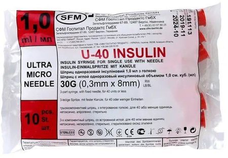 Главная » Аптека Шприц с иглой одноразовый инсулиновый SFM U-40 30G 0,3мм x 8мм 1мл 10шт Просмотров 12 SFM Hospital Products