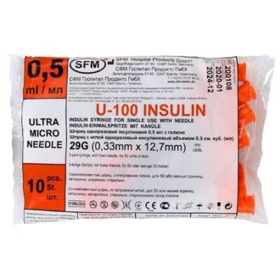 Главная » Аптека Шприц с иглой одноразовый инсулиновый U-100 29G SFM 0,5мл 0,33мм x 12,7мм 10шт Просмотров 12 SFM Hospital Products