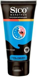Гель-смазка Sico MARATHON Пролонгирующий — прозрачный гель на водной основе. Обладает легким охлаждающим эффектом для увеличения продолжительности полового акта. Прозрачный гель на водной основе обеспечивает идеальное скольжение, прекрасно увлажняет кожу, а легкий холодок добавляет новые ощущения в ваши сексуальные отношения и способствует продлению полового акта.Не содержит красителей, ph-сбалансирован, не содержит жиров, легко смывается водой, не пачкает белье. Полностью совместим с презервативами и любыми изделиями из латекса и полимерных материалов.