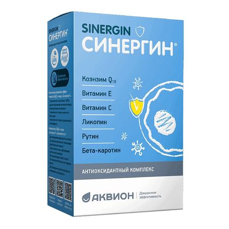 СинергинАнтиоксидантный комплекс• 6 мощных антиоксидантов в оптимальных дозировках.• Повышение работоспособности и снижение утомляемости. • Замедление процессов старения. • Сохранение репродуктивного здоровья.