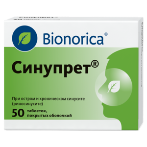 Показания к применениюОстрые и хронические синуситы, сопровождающиеся образованием вязкого секрета.Применение при беременности и кормлении грудьюПрименение Синупрета в период беременности возможно только по назначению врача.Препарат не рекомендуется принимать в период кормления грудью (в связи с отсутствием опыта его клинического применения).ПротивопоказанияПовышенная чувствительность к компонентам препарата, дефицит лактазы, глюкозо-галактозная мальабсорбция, дефицит сахаразы/изомальтазы, непереносимость лактозы, фруктозы, галактозы (из-за содержания в препарате лактозы моногидрата, глюкозы сиропа и сахарозы), детский возраст до 6 лет (из-за недостаточности клинических данных).Побочное действиеВозможны аллергические реакции (кожная сыпь, покраснение кожи, зуд, ангионевротический отек, одышка), желудочно-кишечные расстройства (боль в эпигастральной области, тошнота). При появлении побочных эффектов следует прекратить прием препарата и обратиться к врачу.СоставНа 1 драже:Активные компоненты:горечавки корни (Gentiana lutea) 6,0 мгпервоцвета цветки (Primula veris) 18,0 мгщавеля трава (Rumex acetosa) 18,0 мгбузины цветки (Sambucus nigra) 18,0 мгвербены трава (Verbena officinalis) 18,0 мгВспомогательные компоненты:крахмал картофельный, кремния диоксид коллоидный, вода очищенная, лактозы моногидрат, желатин, сорбитол, стеариновая кислота,оболочка:кальция карбонат, глюкозы сироп, лак зеленый Е 104, Е 132, лак желто-зеленый Е 104, Е 132, магния оксид, крахмал кукурузный, декстрин, воск горный гликолевый, натрия карбонат безводный; метилметакрилата, диметиламиноэтилметакрилата и бутилметакрилата сополимер, повидон К 25, касторовое масло, сахароза, шеллак, тальк, титана диоксид.Взаимодействие с другими препаратамиКомбинация с антибактериальными лекарственными средствами возможна и целесообразна.Взаимодействие с другими лекарственными средствами до настоящего времени не известно.