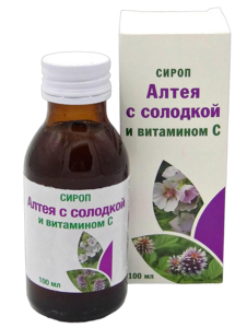 «Сироп алтея с солодкой и витамином С» — насыщенный биологически активными веществами сироп усиленного действия.Алтей с давних времен используется как противовоспалительное и обволакивающее средство при нарушении функции легких и верхних дыхательных путей.Солодка обладает сильным обволакивающим, отхаркивающим и смягчающим кашель действием.Дополнительно сироп обогащен витамином С для укрепления иммунитета.«Сироп алтея с солодкой и витамином С» необходим для укрепления защитных сил организма, особенно в осенне-зимний период.Эффективность сиропа в 2 раза больше!Специальные особенности: Не содержит красителей, ароматизаторов.Имеет приятный натуральный вкус и запах.Способствует улучшению функционального состояния органов дыхания, облегчает отхаркивание.Содержание в суточной дозе (20/30 мл):Витамин С — 60/90 мгПищевая ценность на 100 г продукта (средние значения):белки -0 гжиры — 0 гуглеводы — 55 гЭнергетическая ценность (калорийность) на 100 г продукта — 935 кДж/220 ккал