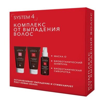 Комплекс против выпадения волос включает 3 этапа: глубокое очищение кожи головы дает терапевтическая маска О, биоботанический шампунь насыщает волосяные луковицы питательными компонентами и биоботаническая сыворотка стимулирует рост новых волос. Каждый из продуктов комплекса работает в 4х направлениях: останавливает выпадение волос, создает условия для роста новых волос, питает волосяные луковицы и нормализует микрофлору кожи головы. Комплекс подходит для использование как женщинам, так и мужчинам. Не содержит гормонов. Продукт не имеет парфюмерных отдушек. Не тестируется на животных.