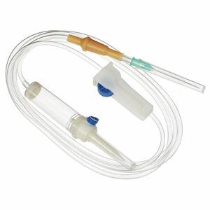 Система инфузионная стерильная для однократного применения с игламиПроизводитель Бейджинг Форнёрс Медикал Эквипмент Ко., КНР РУ ФСЗ 2011/09586 от 14.04.2011г система для переливания растворов обеспечена пластиковым шипом инфузионная система обеспечена заборной иглой из пластика со встроенным воздушным клапаном и воздушным фильтром съемная игла (0,8х40мм) снабжена защитным колпачком инфузионая система обеспечена полужестким прозрачным резервуаром со встроенным дисковым фильтром для жидкости длина трубки 150 см система для переливания растворов обеспечена роликовым регулятором течения инфузионная система снабжена латексным портом для дополнительных инъекций материал резервуара и трубки — полимерный материал игла снабжена защитным колпачком соединение иглы Луер-слип адаптировано к инъекционным иглам, периферическим и центральным венозным катетерам инфузионная система для переливания растворов cтерильна, апирирогенна, нетоксична система cтерилизована оксидом этилена инфузионная система упакована в индивидуальный пластиковый пакет