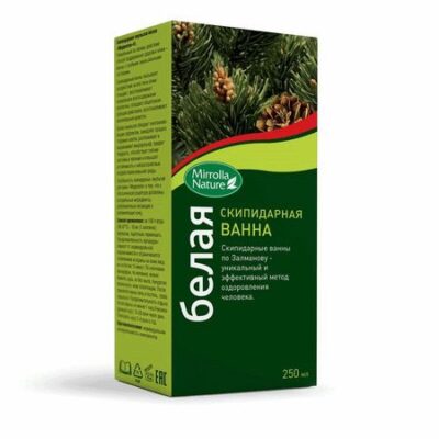 Скипидарная эмульсия белая «Мирролла»® — Жидкость с хвойным ароматом Специальные особенности: Без ароматизаторов, без консервантов, без красителей, не содержит парабенов Уникальный по своему действию способ поддержания здоровья кожи — ванны с особыми эмульсионными составами. Скипидарные ванны оказывают воздействие на все типы кожи: очищают, восстанавливают нормальное влагосодержание коллагена, обладают общетонизирующим действием, восстанавливают капиллярный кровоток. Белая эмульсия обладает омолаживающим эффектом, замедляет процесс старения клеток, разглаживает и выравнивает микрорельеф, придает гладкость, способствует снятию застойных явлений и повышает устойчивость к неблагоприятным воздействиям внешней среды. Особенность скипидарных эмульсий для ванн «Мирролла» в том, что к классической рецептуре, добавлены натуральные ингредиенты, дополнительно питающие и увлажняющие кожу. Показания Улучшение функций организма