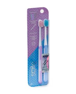 Smile Care — это серия лечебно-профилактической продукции для ухода за полостью рта, соответствующая мировым стандартам качества. Благодаря инновационным материалам и новейшим технологиям производства продукция получила положительную оценку со стороны специалистов-ортодонтов. Ассортимент из наиболее востребованных товаров в секторе FMCG в сочетании с актуальным дизайном гарантирует лояльность к торговой марке и ее популярность у потребителей.Зубная щетка Smile Care предназначена для бережного за полостью рта. Специальная форма щетины позволяет эффективно очистить труднодоступные участки полости рта. Кончик каждой щетинки закруглен и тщательно отполирован. Высококачественная щетина не повреждает эмаль зубов, не царапает зубные реставрации и не травмирует десны. Резиновые накладки на ручке обеспечивают удобный захват и препятствуют скольжению щетки в руке.