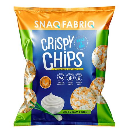 Цельнозерновые рисовые чипсы со вкусом сметаны и лука, запеченные в духовом шкафу, Преимущества: — содержат всего 1 г жира на целую упаковку; — без глютена, без консервантов, без трансжиров; — цельнозерновые; — запеченные в духовке; — подходит веганам. Очень легко усваиваются и подойдут даже тем, у кого есть сложности с пищеварением. Отличный перекус, альтернатива вредным аналогам.