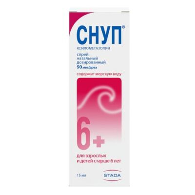 Показания При местном применении препарат практически не всасывается, поэтому его концентрация в плазме крови очень мала (современными аналитическими методами не определяется). Фармакологическое действие Ксилометазолин относится к группе местных сосудосуживающих средств (деконгестантов) с альфа-адреномиметической активностью. Вызывает сужение кровеносных сосудов слизистой оболочки носа, устраняя отек и гиперемию слизистой оболочки носа, восстанавливает проходимость носовых ходов, облегчает носовое дыхание. Действие препарата наступает через 5-10 мин после его применения и продолжается до 12 ч. Лекарственное взаимодействие Одновременное применение ксилометазолина с ингибиторами МАО, трициклическими и тетрациклическими антидепрессантами, другими местными сосудосуживающими средствами (деконгестантами), а также другими препаратами, повышающими АД, может привести к повышению АД, поэтому одновременное применение данных лекарственных препаратов противопоказано. Если пациент применяет вышеперечисленные или другие лекарственные препараты (в т.ч. безрецептурные), перед применением препарата Снуп® следует проконсультироваться с врачом.