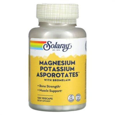 Пищевая ценностьРазмер порции: 2 капсулы VegCapПорций в упаковке: 60 Количество в 1 порции% от суточной нормыМагний (в виде Magnesium Asporotate™ [аспартат магния, цитрат магния, оротат магния])300 мг71%Калий (в виде Potassium Asporotate™ [аспартат калия, цитрат калия, оротат калия])40 мг1%Бромелаин (1800 MCU/г)140 мг** Суточная норма не определена. Пищевая добавкаС бромелаиномЭффективность подтверждена результатами лабораторных исследованийОписание. Магний и калий — это два самых распространенных минерала из содержащихся в организме. Вместе они помогают поддерживать здоровый баланс электролитов, работу мышц, а также здоровье сердечно-сосудистой системы и клеток. Для дополнительной питательной поддержки в состав включен комплекс трав.
