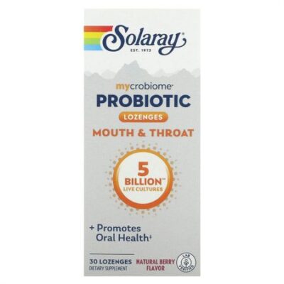 Живые пробиотикиОхлаждение не требуетсяПищевая добавка5 млрд** живых культурСпособствует здоровью полости ртаНе содержит ГМОНе содержит глютена и соиПринимать один раз в деньBLIS K12™BLIS M18™Создано для васМикробиом человека — это совокупность живых микроорганизмов в организме. Как и ваши отпечатки пальцев, ваш микробиом уникален. Триллионы полезных бактерий помогают вам переваривать пищу, регулировать ваше настроение, укреплять иммунитет и многое другое. Поддержание баланса микробиомов имеет важное значение для вашего здоровья. Ваши потребности индивидуальны. Пробиотики Solaray Mycrobiome Probiotics созданы специально для вас.Рот и горлоЗдоровье ушей, носа и горлаЗдоровые зубы и десныОсвежает дыханиеБаланс ротовой полостиЗдоровье иммунной системыS. salivarius для здоровья полости ртаS. salivarius BLIS K12 и BLIS M18 — это уникальные штаммы пробиотических бактерий, клинически изученные для улучшения здоровья полости рта.BLIS K12 колонизируется в полости рта и поддерживает здоровье иммунной системы уха и горла.BLIS M18 может помочь против образования зубного налета.Помогает контролировать неприятный запах изо рта.Для детей и взрослых**Минимальная эффективность на момент изготовления. Живых организмов на порцию из 1 леденца.