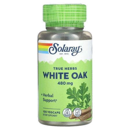 Главная » Аптека Solaray, True Herbs, белый дуб, 480 мг, 100 вегетарианских капсул Просмотров 4 Соларай