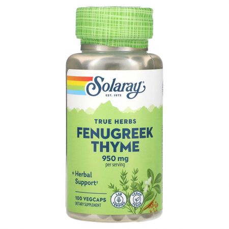Главная » Аптека Solaray, True Herbs, пажитник и чабрец, 950 мг, 100 растительных капсул Просмотров 4 Соларай