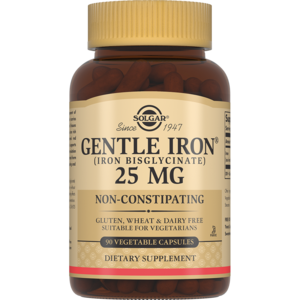 Бренд Solgar (Солгар) — всемирно известный производитель высокоэффективных натуральных препаратов для здоровья.ЛЕГКОДОСТУПНОЕ ЖЕЛЕЗО ДЖЕНТЛ АЙРОН (Gentle Iron® 25 mg Vegetable Capsules) — сбалансированный составСостав активных компонентов:Железо (бисглицинат железа) 25 мгРекомендуемый прием (1 капс.) содержит: железо — 25-31 мг (Бисглицинат железа 137,5 мг), что составляет 179-221% от рекомендуемого уровня суточного потребления для женщин и не превышает верхний допустимый уровень.Железо относится к незаменимым микроэлементам необходимым для нормальной жизнедеятельности человека. При недостатке железа нарушается синтез гемоглобина, который выполняет важнейшую функцию в теле человека — транспорт кислорода к клеткам.Нормальное содержание железа важно для всех людей, но именно у женщин чаще всего наблюдается недостаток этого элемента вследствие регулярной ежемесячной потери крови, а также во время беременности, грудного вскармливания, в период роста и физического развития, полового созревания. Также в группу риска по дефициту железа входят и те, кто потребляет в больших количествах кофе, чай и другие напитки с кофеином. Кофеин ухудшает всасывание железа и может способствовать проявлению или усугублять имеющийся железодефицит.Солгар «Легкодоступное железо Джентл Айрон» содержит 25 мг железа в органической форме. Эта форма легко усваивается и снижает риск развития нежелательных эффектов со стороны желудочно-кишечного тракта.Не содержит глютена, пшеницы, молочных продуктовБез консервантов.Подходит для вегетарианцев.без красителейбез отдушек
