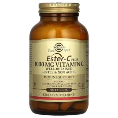 Компания основана в 1947 годуХорошо удерживается в организмеМягкий и некислыйУкрепляет иммунитетБез ГМОПодходит для вегановХаляльный продуктНе содержит молочных продуктов и пшеницыСертификат Certified Gluten FreeСертификат кошерности Kosher ParveПищевая добавкаEster-C® Plus — это эксклюзивная формула, разработанная компанией Solgar®, которая содержит уникальную форму витамина C с нейтральным уровнем pH (без повышенной кислотности), не вызывающую раздражения желудка. Метаболиты витамина C в составе Ester-C® способствуют удержанию витамина C в клетках, обеспечивая дополнительное преимущество. Для производства уникального комплекса метаболитов аскорбата кальция используется особая технология. Этот комплекс метаболитов хорошо удерживается в организме, содержит полезные антиоксиданты и укрепляет иммунитет. В его состав входят натуральные биофлавоноиды и ягоды ацеролы, а также порошок из плодов шиповника.