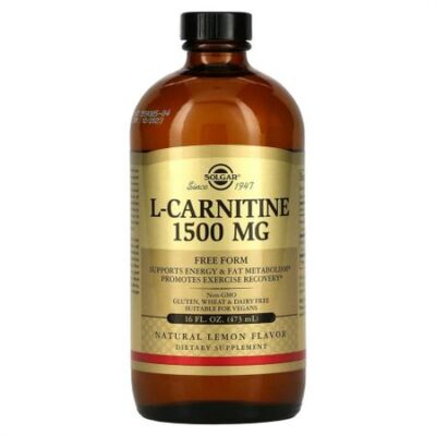 Пищевая ценность Размер порции: 1 столовая ложка (15 мл) Порций в упаковке: прибл. 31 Количество в 1 порции % от суточной нормы Пантотеновая кислота (в виде декспантенола) 10 мг 200% L-карнитин (в свободной форме) 1500 мг (1,5 г) ** ** Суточная норма не определена На рынке с 1947 года Свободная форма Способствует выработке энергии и жировому обмену Способствует восстановлению после упражнений Без глютена, пшеницы и молочных продуктов Без ГМО Подходит для вегетарианцев Пищевая добавкаL-карнитин — это дипептид (образованный из двух аминокислот), который обеспечивает поддержку при упражнениях на выносливость и способствует восстановлению после интенсивных тренировок. Он содержится в митохондриях (источник энергии для клеток) и способствует метаболизму жиров и выработке энергии. L-карнитин также полезен для сердца, поскольку оно зависит от L-карнитина при выработке энергии из жиров.Для оптимального поглощения и усвоения средство содержит L-карнитин в свободной форме. Оно также содержит пантотеновую кислоту, которая входит в состав основного коэнзима, участвующего в высвобождении энергии из клеток. Компания Solgar предлагает эти питательные вещества во вкусной жидкой форме, готовой к употреблению. Чтобы уменьшить окисление и сохранить эффективность питательных веществ, флакон сверху заполняется азотной подушкой.