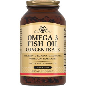 Капсулы «Концентрат рыбьего жира Омега-3» (Omega-3 Fish Oil Concentrate Softgels) — данная формула представляет собой натуральный концентрированный рыбий жир с оптимальным содержанием омега-3 полиненасыщенных жирных кислот, которые способствуют защите зрения, улучшению работы головного мозга, профилактике сердечно-сосудистых заболеваний, снижению уровня холестерина, способствуют хорошему настроению.При производстве капсул «Концентрат рыбьего жира Омега-3» применяется уникальная технология молекулярная дистилляция, которая позволяет удалить соли тяжелых металлов из рыбьего жира. Для защиты от прогоркания и окисления в каждую капсулу «Концентрата рыбьего жира Омега-3» добавлен натуральный витамин Е.