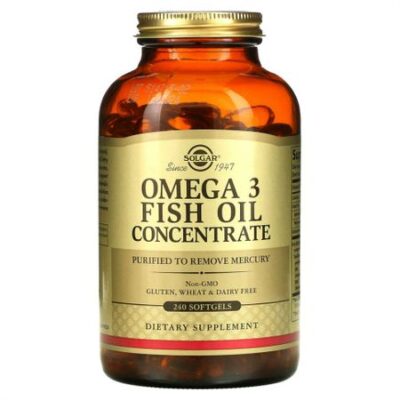 На рынке с 1947 года Продукт очищен от ртути Без ГМО Без глютена, пшеницы и молочных продуктов Пищевая добавкаДанный препарат представляет собой натуральный концентрированный источник незаменимых омега-3 жирных кислот ДГК и ЭПК, полученных из глубоководной холодолюбивой рыбы. ЭПК и ДГК поддерживают здоровье сердечно-сосудистой системы и суставов, способствуют укреплению иммунитета. Рыбий жир в составе данного препарата прошел испытания на оптимальную чистоту. Сырье проходит молекулярную возгонку, в результате которой удаляется ртуть.
