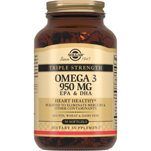 Полиненасыщенные жирные кислоты омега-3 относятся к группе эссенциальных жиров так как участвуют в формировании мембран клеток головного мозга зрительного анализатора и биологических мембран других органов и тканей. Поскольку организм человека их не синтезирует самостоятельно они должны поступать с пищей.Для получения Тройная Омега-3 950 ЭПК и ДГК используется рыбий жир богатый содержанием ПНЖК Омега-3 полученный из глубоководных рыб холодных морей анчоус макрель сардины сельдь.Из всех продуктов Солгар содержащих жирные кислоты класса Омега-3 Тройная Омега-3 950 ЭПК и ДГК содержит самую высокую дозировку Омега-3 ПНЖК — 950 мг в одной капсуле.Тройная Омега-3 950 мг ЭПГ и ДГК производится по уникальной технологии молекулярной дистилляции — методу который позволяет удалить соли тяжелых металлов из рыбьего жира. Для защиты от прогоркания и окисления в каждую капсулу Тройная Омега-3 950 мг ЭПГ и ДГК добавлен натуральный витамин Е.