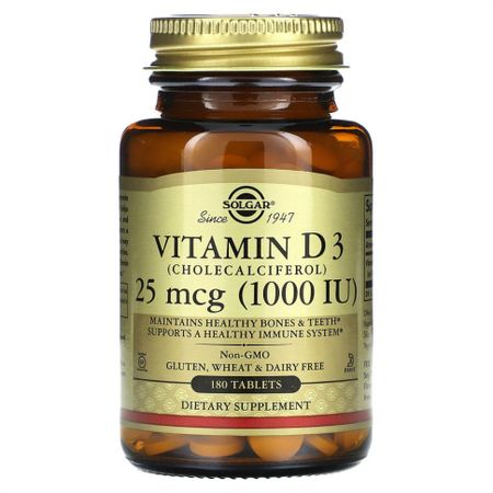 Компания основана в 1947 году Холекальциферол Поддерживает здоровье костей и зубов Поддерживает здоровье иммунной системы Сертификат кошерности Kosher Parve Пищевая добавка Сертификат KOF-K Solgar № K-1250 Сертификат Certified Gluten FreeВитамин D необходим для лучшего усвоения кальция, который отвечает за здоровье костей и зубов. Кроме того, витамин D способствует укреплению иммунитета и правильному функционированию нервно-мышечной системы. Данный препарат содержит необходимую дневную дозу витамина D3.