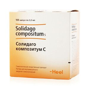 Показания к применению— в комплексной терапии острого и хронического цистита.Применение при беременности и кормлении грудьюПрименение препарата возможно, если ожидаемая польза для матери превышает потенциальный риск для плода н ребенка. Необходима консультация врача.Противопоказания— возраст до 18 лет (в связи с недостаточностью клинических данных) — повышенная чувствительность к компонентам препарата — известная повышенная чувствительность к Solidago или другим растениям семейства сложноцветных.Побочное действиеВозможны аллергические реакции, повышенное слюноотделение. В этих случаях препарат следует отменить.Состав1 амп. Solidago virgaurea (солидаго виргауреа) D3 22 мкл Berberis vulgaris (Berberis) (берберис вульгарис (берберис)) D4 22 мкл Vesica urinaria suis (везика урианария суис) D8 22 мкл Pyelon suis (пиелон суис) D10 22 мкл Ureter suis (уретер суис) D10 22 мкл Urethra suis (уретра суис) D10 22 мкл Terebinthina laricina (Resina Laricis) (теребинтина ларицина (ресина ларицис)) D6 22 мкл Mercurius sublimatus corrosivus (Hydrargyrum bichloratum) (меркуриус сублиматус коррозивус (гидраргирум бихлоратум)) D8 22 мкл Arsenicum album (Acidum arsenicosum) (арсеникум альбум (ацидум арсеникозум)) D28 22 мкл Cuprum sulfuricum (купрум сульфурикум) D6 22 мкл Bucco (Barosma) (букко (баросма)) D8 22 мкл Hepar sulfuris (Hepar sulfuris calcareum) (гепар сульфурис (гепар сульфурис калькареум)) D10 22 мкл Capsicum annuum (Capsicum) (капсикум аннуум (капсикум)) D6 22 мкл Orthosiphon aristatus (Orthosiphon stamineus) (ортосифон аристатус (ортосифон стаминеус)) D6 22 мкл Equisetum hyemale (Equisetum hiemale) (эквизетум хиемале (эквизетум хиемале)) D4 22 мкл Chondodendron tomentosum (Pareira brava) (хондодендрон томентозум (пареира брава)) D6 22 мкл Cantharis (Lytta vesicatoria) (кантарис (литта весикаториа)) D6 22 мкл Apisinum (аписинум) D8 22 мкл Baptisia tinctoria (Baptisia) (баптизия тинктория (баптизия)) D4 22 мкл Natrium pyruvicum (натриум пирувикум) D10 22 мкл Pyrogeniun-Nosode (пирогениум-нозоде) D198 22 мкл Sarsaparilla (Smilax) (сарсапарилла (смилакс)) D6 22 мкл Colibacillinum Nosode (колибациллинум нозоде) D13 22 мкл Coxsackie-Virus A9-Nosode (коксакие-вирус A9-нозоде) D8 22 мкл Argentum nitriсum (аргентум нитрикум) D6 22 мкл. Вспомогательные вещества: вода д/и — 1650 мг, натрия хлорид (для установления изотонии).Взаимодействие с другими препаратамиПрименение гомеопатических препаратов не исключает лечение другими лекарственными средствами
