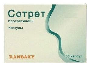 Показания к применениюДля приема внутрь: тяжелые формы узелково-кистозных акне, особенно с локализацией на туловище. Для ректального применения: тяжелые рецидивирующие формы угрей, сыпи с сопутствующим себорейным процессом. Для наружного применения: папуло-пустулезные угри, себорея, розовые угри, периоральный дерматит.Применение при беременности и кормлении грудьюИзотретиноин оказывает выраженное тератогенное и эмбриотоксическое действие. Противопоказан при установленной и планируемой беременности. Противопоказан в период лактации.ПротивопоказанияБеременность, установленная и планируемая, лактация, повышенная чувствительность к изотретиноину, одновременное применение антибиотиков группы тетрациклина. Для приема внутрь: тяжелые нарушения функции печени и/или почек, гипервитаминоз А, значительно повышенный уровень липидов в плазме крови, новообразования. Для ректального применения — заболевания прямой кишки.Побочное действиеДерматологические реакции: сухость слизистых оболочек, кожная сыпь, дерматит, зуд, хейлит, эритема (особенно на лице), потливость, ладонно-подошвенное шелушение, паронихии, дистрофия ногтей, усиленное разрастание грануляционной ткани в пораженной области; редко — истончение волос, васкулит, фоточувствительность. Со стороны органов чувств: конъюнктивит, светобоязнь, снижение ночного зрения, помутнение роговицы, ослабление слуха. Со стороны ЦНС и периферической нервной системы: головная боль; редко — депрессия, судорожные припадки, склонность к суициду; в единичных случаях — внутричерепная гипертензия. Со стороны пищеварительной системы: тошнота; редко — колит, кровотечения из ЖКТ, транзиторное повышение активности печеночных трансаминаз; в единичных случаях — гепатит. Со стороны системы кроветворения: анемия, нейтропения, изменение количества тромбоцитов, повышение СОЭ. Со стороны обмена веществ: повышение концентрации ТГ, глюкозы. Со стороны костно-мышечной системы: боли в мышцах и суставах; редко — гиперостозы. Прочие: носовое кровотечение. При ректальном и наружном применении: на 1-2 неделе лечения возможно появление новых высыпаний, зуда, отечности и покраснения кожи.СоставКапсулы 1 капс. изотретиноин 10 мг.Взаимодействие с другими препаратамиДействие изотретиноина ослабляется при одновременном применении прогестерона в микродозах. При одновременном применении изотретиноина и витамина А возможно усиление токсических эффектов. При одновременном применении изотретиноина и антибиотиков группы аминогликозидов существует риск развития внутричерепной гипертензии.