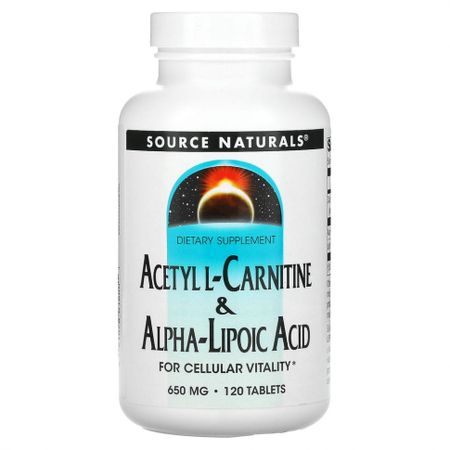 Source Naturals, Ацетил L-карнитин и альфа-липоевая кислота, 650 мг, 120 таблеток