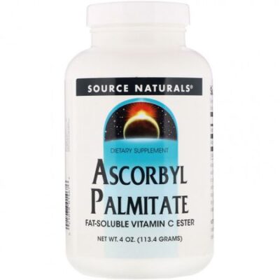 Дополнительные факты Размер порции: 1/2 уровня чайной ложки (около 500 мг) Порций в контейнере: 226 Количество на порцию % DV Витамин С (как аскорбилпальмитат) 200 мг 333% Аскорбилпальмитат (сложный эфир витамина С) 500 мг † †Суточная доза не определена. Пищевая добавка Жирорастворимый эфир витамина C Подходит для вегетарианцевАскорбилпальмитат — это жирорастворимая форма аскорбиновой кислоты, которая обладает антиоксидантными свойствами витамина С в отношении липидов в организме. Лабораторные исследования показали, что аскорбилпальмитат может быть более эффективным в качестве антиоксиданта для защиты липидов от перекисного окисления, чем водорастворимый витамин С.