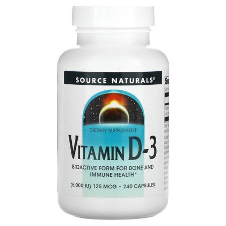 Source Naturals, Витамин D-3, 5000 МЕ, 240 капсул