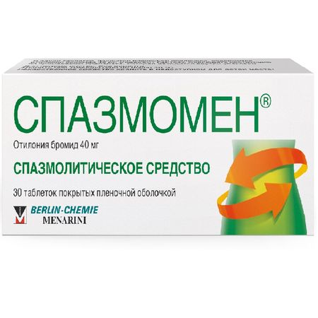 Спазмомен — гастроэнтерологический спазмолитик с избирательностью действия — дистальный отдел кишечника. Показания: -симптоматическое лечение при синдроме раздраженного кишечника -симптоматическое лечениеи болезненных спазмах дистальных отделов кишечника (ободочной и прямой кишки) — для ослабления боли в животе, при вздутии и нарушениях моторики кишечника у пациентов старше 18 лет, обусловленных спазмом гладкой мускулатуры дистальных отделов кишечника. Противопоказания — гиперчувствительность к отилония бромиду или другим компонентам препарата; — непереносимость лактозы, дефицит лактазы, глюкозо-галактозная мальабсорбция; — детский возраст до 18 лет. Способ применения и дозы Внутрь. Таблетки принимают целиком, не разжевывая, запивая стаканом воды, предпочтительно за 20 минут до еды. Рекомендуемая доза на один прием составляет 40 мг (1 таблетка), рекомендуемая суточная доза составляет 80-120 мг (по 1 таблетке 2-3 раза в сутки). Доза подбирается в зависимости от клинической картины и реакции на лечение в соответствии с принципами терапии при СКР. Продолжительность лечения не ограничена и зависит от течения заболевания. Врач должен периодически оценивать необходимость продолжения терапии.