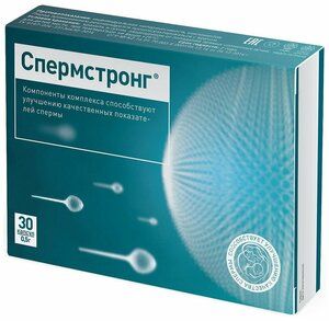 Спермстронг- биологически активная добавка к пище. Не является лекарством.Компоненты комплекса способствуют:- Улучшению качественных показателей спермы: повышают концентрацию, подвижность, количество и оплодотворяющую способность сперматозоидов.- Стимулированию сперматогенеза и кровообращения в половых органах.- Повышению эффективности лечения нарушений репродуктивной функции (бесплодия) у мужчин, обусловленных снижением качества спермы (недостаточной концентрацией сперматозоидов, уменьшением подвижности сперматозоидов и их абсолютного количества).- Повышению сексуальной и репродуктивной функций.- Улучшению общего самочувствия, повышению либидо, уменьшению утомляемости и раздражительности, повышению умственной и физической работоспособности, памяти, уменьшению потоотделения.- Нормализации обмена веществ и укреплению иммунитета.L-аргинин стимулирует сперматогенез и кровенаполнение половых органов. Благотворно влияет на здоровье предстательной железы, увеличивает производство спермы и усиливает приток крови к половым органам, создавая условия для более стабильной и продолжительной эрекции. Семенная жидкость на 80% состоит из этого белкового строительного материала, и дефицит его может привести к бесплодию.L-карнитин — это природное витаминоподобное вещество, которое принимает участие в процессах созревания сперматозоидов и напрямую влияет на мужские репродуктивные возможности. Исследуя причины мужского бесплодия, ученые многих стран пришли к выводу, что одним из основных веществ, влияющих на качество спермы (количество и подвижность сперматозоидов), является L-карнитин. Он обеспечивает созревание и увеличивает подвижность половых клеток, стабилизирует мембраны сперматозоидов, улучшает показатели качества спермы — повышает концентрацию, подвижность, количество и оплодотворяющую способность сперматозоидов. Так как созревание сперматозоидов длится 74 дня, то очень важно в течение всего этого времени не прерывать поступление в организм L-карнитина и других значимых для этого процесса веществ.Экстракт корня астрагала повышает подвижность сперматозоидов, укрепляет иммунную систему, нормализует обмен веществ, артериальное давление и уровень сахара в крови, улучшает общее самочувствие, повышает либидо, умственную и физическую работоспособность, память .«Селексен» способен накапливаться в организме и отдавать селен только в тех случаях, когда у организма имеется чрезвычайная потребность в нем. Дефицит селена может привести к уменьшению продукции спермы, что приводит к стерильности у мужчин. Селен — имеет антиоксидантные свойства, которые помогают защитить организм человека от появления свободных радикалов, что влечет за собой повреждение мембран клеток и генетического материала. Селен также необходим для увеличения количества вырабатываемых сперматозоидов и для выделения тестостерона. В комплексе с витамином Е действие селена интенсифицируется.Цинк Важный компонент в построении генетического материала. Дефицит цинка вызывает изменения хромосом, приводя к бесплодию. Цинк необходим для продукции половых гормонов. Этот микроэлемент содержится в сперме мужчины, причем в самых высоких концентрациях, более того, он и определяет качество сперматозоидов.Марганец оказывает значительное вли