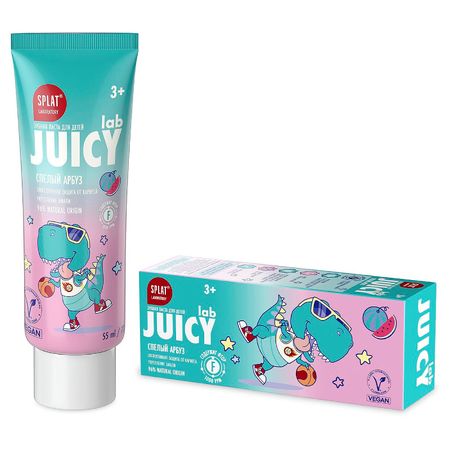 Клинически доказано, что детская паста SPLAT® Juicy® LAB, бережно очищает, глубоко восстанавливает и укрепляет твердые ткани зубов, эффективно защищает от кариеса и налета. 96% натуральных компонентов, среди которых: волшебный фтор — 1000ppm, папаин, экстракт лакричника и цинк. Вкус спелого арбуза окунет в солнечное лето и наполнит день яркими эмоциями. А еще она с блестками!