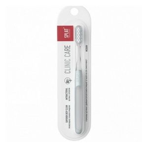 Бренд Splat (Сплат) — ведущий разработчик и производитель профессиональных решений в категориях ухода за полостью рта. Зубные щетки Splat Professional- это новая серия инновационных зубных щеток, не имеющая мировых аналогов! Зубные щетки Splat Prof. — это тщательно продуманные конструкции, разработанные с учетом рекомендаций стоматологов. Сплат Professional Зубная Щетка Clinic Care Medium — инновационная зубная щетка — научный подход к заботе о полости рта. Жесткость щетины: средняя, 2900 щетинок.Цвет в ассортименте: желтый, серый, бирюзовый, розовый. Антибактериальная витая щетина с ионами серебра. Содержит 2900 щетинок двух уровней Двухуровневое расположение щетины повышает эффективность очищения. Утонченные переплетенные (витые) щетинки центральных рядов образуют мягкий и плотный контакт с поверхностью зуба. Дополнительный ряд щетинок для очищения межзубных промежутков очищает труднодоступные поверхности на 20% эффективнее. Эргономика рукоятки — позволяет контролировать положение щетки при чистке зубов. Одобрено СТАР (Стоматологическая ассоциация России). Специальные особенности: не содержит бисфенол А, ПВХ, латекс. Результат: Чистая, блестящая поверхность зубов.