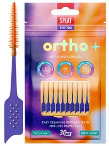 Межзубный ершик с эластичным кончиком SPLAT® SMILEX ORTHO+ со вкусом мяты идеально подходит для широких межзубных промежутков, ортоконструкций, имплантов, мостовидных протезов и пространства под дугой брекет-системы. Эластичные кончики ершиков имеют силиконовое покрытие, что позволяет мягко и атравматично удалять налет и остатки пищи. Аромат мяты способствует свежему дыханию.Ручка ершиков имеет заостренный наконечник, который можно безопасно использовать вместо зубочистки для очищения глубоких фиссур.В комплект входит 30 ершиков, а также стильный и компактный кейс для хранения
