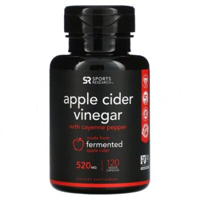 Sports Research, Яблочный уксус с кайенским перцем, 520 мг, 120 растительных капсул