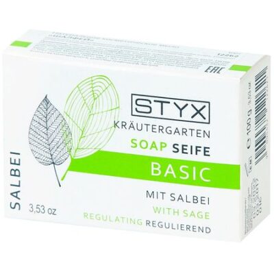 Натуральное косметическое мыло Шалфей дезодорирует, устраняет тяжелые запахи тела. Спасает от потливости и прыщиков. Идеально после спорта. Подходит для всех типов кожи. Косметическое натуральное мыло STYX не содержит синтетических ПАВ. Его пену, похожую на крем, образуют 4 вида тензидов, получаемых из растительных жиров (кокос, ши, какао, жожоба), мыльного корня, водорослей, алоэ, солодки. Очищая кожу, амфотерные тензиды нейтрализуют агрессивные компоненты воды, оберегая ее рН. Являясь пережиренным (триглицериды, ферменты и эфирные масла пачули, ветивера), мыло реставрирует гидролипидную манию эпидермиса.