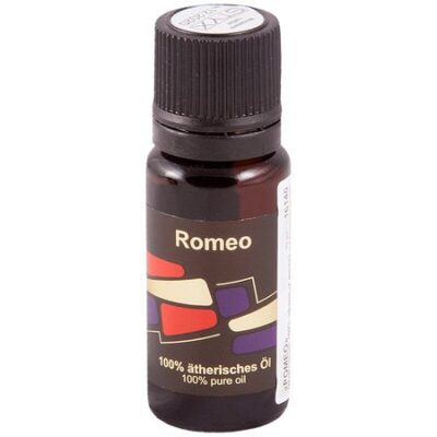 РОМЕО – смесь состоит из 100% эфирных масел, полученных водно-паровой дистилляцией из экологически чистого растительного сырья. Мажорный букет смолисто-древесный с теплыми сургучно-хмельными оттенками и бальзамическими аккордами влажной земли, табака и брусники. Прозрачная текучая маслянистая на вид жидкость цвета нежной охры, ρ 0,85 г/см3 ОСНОВНОЕ ДЕЙСТВИЕ Повышает выносливость, работоспособность, мышечный и эмоциональный тонус. Помогает стоически противостоять трудностям, достигать поставленных целей в любой области: от спорта и бизнеса, до дел сердечных. Стимулирует обмен веществ. Эротический стимулятор. ЦЕЛЕБНОЕ ДЕЙСТВИЕ Тонизатор. Афродизиак. Повышает иммунный статус организма, защищая от простуд, гриппа, насморка. Облегчает вегетососудистые кризы и похмельный синдром: астения, сонливость, головокружения, тошнота, головная боль. Активизирует обмен веществ. Ускоряет процесс выздоровления при травмах, артритах, миозитах, остеохондрозе. Стимулирует гемодинамику, улучшает микроциркуляцию. Оптимизирует пищеварение, оказывает желчегонное, холелитическое действие, устраняет тяжесть в желудке после еды, галитоз (скверный запах изо рта), симптомы алиментарных расстройств (тошнота, рвота, диарея), ускоряет утилизацию жирной и сладкой пищи. Пролонгирует эротический азарт, повышает потенцию. КОСМЕТИЧЕСКОЕ ДЕЙСТВИЕ Шлифует, выравнивает эпидермис, улучшает цвет лица, тонус кожи. Ускоряет заживление микротравм. Укрепляет, ускоряет рост волос. ПСИХОЭМОЦИОНАЛЬНОЕ ДЕЙСТВИЕ Активизирует интеллектуальную деятельность, тонизирует, бодрит, заряжает оптимизмом. Помогает избавиться от болезненной застенчивости. Укрепляет стоические качества личности, стимулирует деловую активность, повышает продуктивность интеллектуальной деятельности. БЫТОВОЕ ПРИМЕНЕНИЕ Идеально сочетается со вкусами красного вина, крепких напитков, чая и кофе. Ценный компонент парфюмерии эротического и восточного направления. Если добавлять эту смесь в средства для уборки квартиры, никогда никаких жучков-паучков-муравьев в доме не появится. МЕРЫ ПРЕДОСТОРОЖНОСТИ При нанесении на кожу в чистом виде вызывает кратковременную (2-3 минуты) термореакцию — горение, жжение. Не допускать попадания в глаза. При приёме внутрь придерживаться дозировок и показаний. ХРАНЕНИЕ Хранить в защищенном от прямых солнечных лучей прохладном месте. Беречь от детей и открытого огня. Срок хранения при соблюдении герметичности упаковки – более 5 лет. С течением времени может загустевать. Идеально сочетается с эфирными маслами лиметт, грейпфрут, мандарин, апельсин, петит грейн, цитронелла, лемонграсс