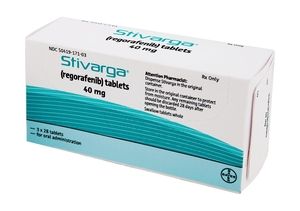 Показания к применению метастатический колоректальный рак у пациентов, которым уже проводилась или не показана химиотерапия фторпиримидиновыми препаратами, терапия, направленная против сосудистого эндотелиального фактора роста (VEGF) и терапия, направленная против рецепторов эпидермального фактора роста (EGFR) при диком типе KRAS; неоперабельные или метастатические гастроинтестинальные стромальные опухоли у пациентов при прогрессировании на терапии иматинибом и сунитинибом или непереносимости данного вида лечения.Применение при беременности и кормлении грудьюЖенщин репродуктивного возраста необходимо проинформировать об опасности препарата Стиварга® для плода. Во время лечения и в течение 8 нед после терапии препаратом Стиварга® женщины и мужчины репродуктивного возраста должны применять надежные методы контрацепции.Данные о применении препарата Стиварга® у беременных женщин отсутствуют. Учитывая механизм действия регорафениба, возможно негативное влияние препарата Стиварга® на плод. Исследования на животных продемонстрировали репродуктивную токсичность регорафениба.Не установлено, выделяются ли регорафениб и его метаболиты с женским молоком. Исследования на животных показали, что регорафениб и его метаболиты выделяются с грудным молоком. Поскольку нельзя исключить возможность негативного влияния регорафениба на рост и развитие детей раннего возраста, следует прекратить грудное вскармливание в период лечения препаратом Стиварга®.Фертильность. Не проводилось специальных исследований применения регорафениба для оценки его влияния на фертильность человека. В исследованиях на животных наблюдалось снижение мужской и женской фертильности.Противопоказания повышенная чувствительность к регорафенибу или любому другому компоненту, входящему в состав препарата; тяжелая степень печеночной недостаточности (класс С по классификации Чайлд-Пью); тяжелая степень почечной недостаточности (опыт клинического применения отсутствует); беременность; период грудного вскармливания; детский возраст до 18 лет.