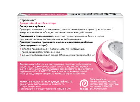 Стрепсилс клубника для детей таб. для рассасыв. №16